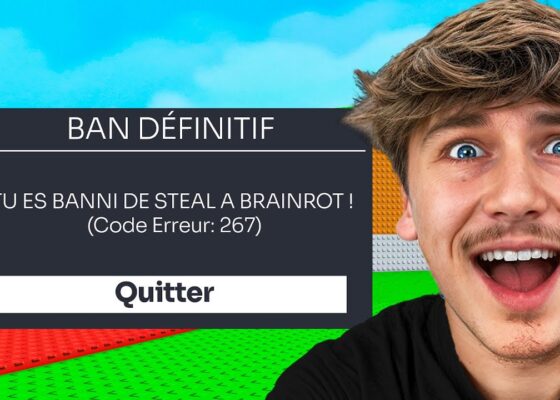 Kevko annonce son bannissement de Steal A Brainrot dans une vidéo.
